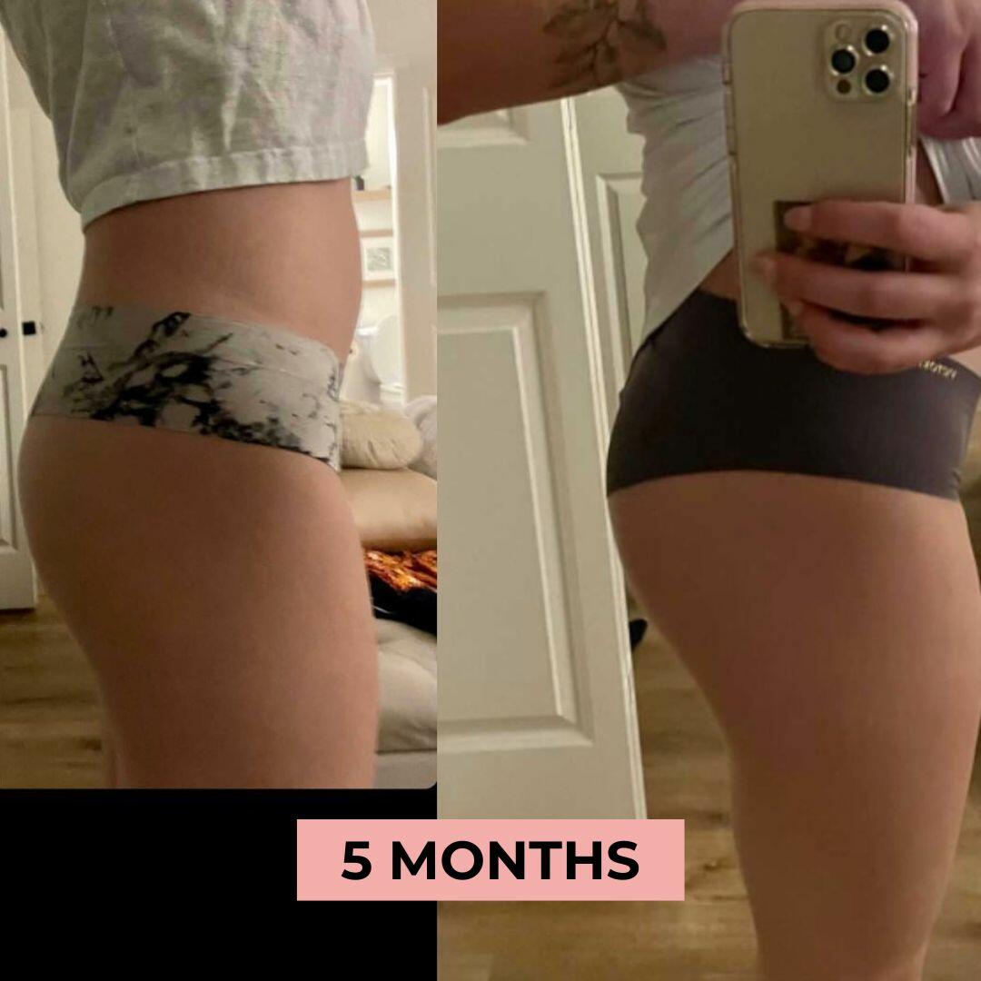 WEEK 5: Noticeable results: rounder, firmer, and more lifted glutes. Increase intensity to keep the progress going strong.